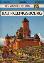 ht koenigsbourgJacques Martin, le dessinateur, est mondialement connu pour ses bandes dessinées « Alix » et « Lefranc ». Cet artiste au dessin précis, classique, aimait l’Histoire et les lieux historiques. Son premier « Lefranc » met en images le Haut Kœnigsbourg, mais ce n’est pas tant cette bédé, pourtant remarquable, qui nous occupe ici ; c’est un ouvrage qui fait partie des « voyages de Jhen », et dont les dessins sont de Yves Plateau.