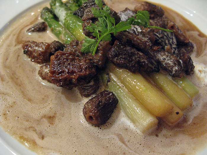 Ainsi on se régale de soupes à l'ancienne, de morilles au vin jaune, de cèpes à la bordelaise, de cochon de lait rôti à l'os, de pigeon rôti à l'ail et au thym, de colvert cuisiné entier sauce Bigarade, de Chevreuil sauce Grand Veneur… selon les saisons et le marché. Nicolas Castelet aborde ces classiques avec une belle maîtrise. Une séduisante fraîcheur d'exécution tend à , non pas revisiter, mais à alléger ces recettes traditionnelles.